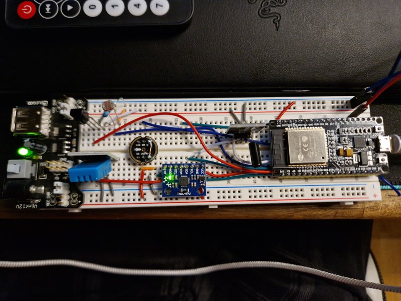 This box can do many things, such as displaying the time and date as a binary clock. With more than seven built‑in sensors, it can measure its surroundings. It can obtain weather data from a web API and display it on the eight‑by‑eight LED matrix. With a simple rotation, it can be turned into a spectrum analyzer for music visualization. And of course, everything can be controlled and viewed on a locally hosted website.